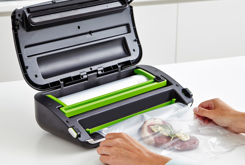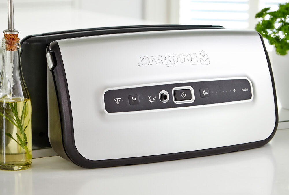 FoodSaver FFS016 er mere alsidig og tilbyder flere måder at vakuumpakke på. Vakuumteknologien fjerner luften fra emballagen for at skabe en lufttæt forsegling, der får maden til at holde længere. Med indbygget opbevaring af ruller og en integreret skæreanordning er det nemt at justere posernes størrelse.